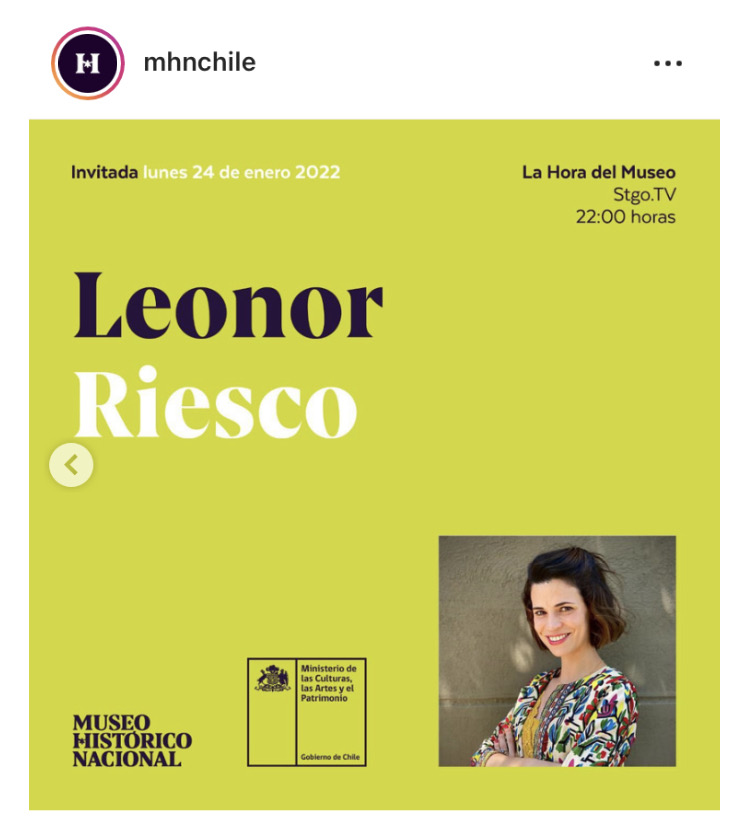 Entrevista para el programa radial ‘La hora del museo’ del Museo Histórico Nacional y Radio USACh, enero 2022. Conducción de Luis Cruz. Registro en YouTube y Spotify.